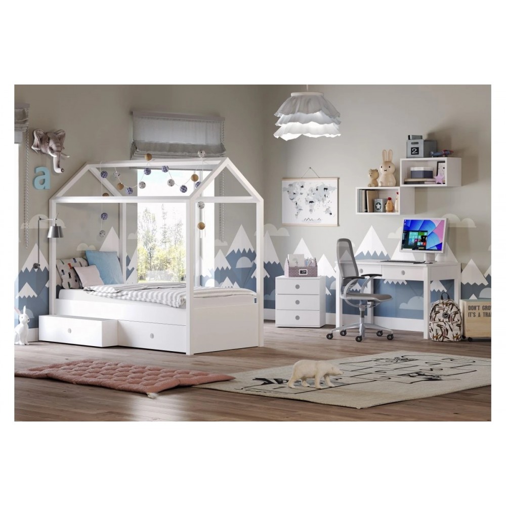 Ο ιδιαίτερος σχεδιασμός σε σχήμα σπιτιού προσθέτει γοητεία και χαρακτήρα στο υπνοδωμάτιο του παιδιού.